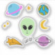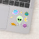 Pegatina Cabeza alienígena con planetas, OVNI y estrellas