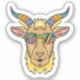Un caprino caprino caprichoso y elegante, con una elegante cabra personalizado con una mugre maliciosa. La cabra tiene un par de gafas de sol de aviador retro y una colorida banda de cabeza con múltiples patrones. El diseño general es llamativo y lúdico, perfecto para decorar ordenadores portátiles, portátiles u otros objetos personales.