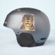 Este pegatina de vinilo tiene la cabeza de un tigre marrón asiático con rayas negras y una cara fiera delineada en rojo.