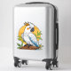 Una vibrante cacatúa de estilo cartoon posada en una rama, con plumaje blanco, alas azules y una cresta naranja atrevida contra un círculo amarillo cálido. Arte de vida silvestre brillante y juguetón adecuado para branding y educación.