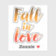 Enamorarse de este pegatina con una tipografía simple y elegante con colores estacionales familiares.