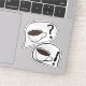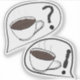 La imagen muestra dos burbujas de habla, una con una taza de café humeante y un signo de interrogación, y la otra con otra taza de café humeante y un signo de exclamación. La imagen sugiere que alguien pide una cita para el café y el otro acepta con entusiasmo.