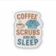 Coffe, Scrubs y No Sleep, este pegatina describe la vida de una enfermera.