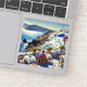 Perfecto regalo para los amantes del viaje y del café. El cuadro acuático representa el encanto tranquilo e idílico de una cafetería al aire libre de Santorini. El espacio está decorado con paredes encaladas con acentos azules y aberturas abovedadas que ofrecen unas vistas impresionantes al brillante mar Egeo. Mesas de madera con sillas de mimbre dispersas por todas partes, cada una de ellas adornada con jarrones de flores de buganvillas vibrantes. Un mostrador de piedra natural ofrece una cafetera tradicional griega, bollería y una cafetera espresso de época. En la parte superior, una pérgola de madera recubierta de viñas exuberantes ofrece una sombra parcial, lo que crea una luz solar dilatada en el suelo de baldosas de piedra. Los clientes se sientan con tranquilidad, tomando café y mirando al mar o conversando en silencio. Los icónicos colores blanco y azul de Santorini armonizan maravillosamente con la belleza natural del paisaje de los alrededores.