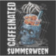 Iced coffee meets creepy cool in this Summerween mashup. A skeleton hand drops a straw into a skull-shaped mug, filled with cold brew and surrounded by spiderwebs and grunge textures. From the gothic detailing to the caffeine-fueled energy, this design blends spooky season with summer heat in a bold way.