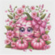 Un bonito personaje de calabaza de camoflauge rosa con un arco rosado y flores rosas.