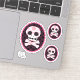 Ilustracion original de Pip Gerard (Pip Pip Hooray) COPYRIGHT 2016. Funky, rosa divertido, negro y blanco dia de muertos, ilustracion estilo Día de la Calavera Azúcar Muerta. Con elementos y patrones tribales detallados en todo el edificio. El borde de cielorraso enmarca el motivo oscuro. ¡Decoración de Halloween o para aquellos como yo a los que les gusta el cráneo del azúcar se ven en cualquier época del año! ¡Estos pegatinas son impermeables, impermeables y resistentes a los arañazos! Perfecto para la ventana de tu auto trasero o quizás en tu portátil? Con 1 pegatina de gran tamaño y 2 pegatinas de menor tamaño en una hoja de vinilo. Cada pegatina es muerto/besado cortado y listo para pelar y pegar donde quiera.