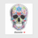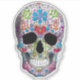 Un cráneo muy bien decorado con muchos colores y puntos.