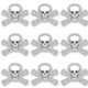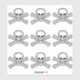 Contemplar la hoja de pegatinas con el cráneo de Jolly Roger y los pegatinas piratas de huesos.
