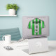 Pegatina de fútbol. Diseño de camisas de fútbol verdes y blancas para personalizar. Añadir nombre y número.