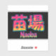 Diseño eléctrico retro de los 80 que celebra Naeba, uno de los destinos de esquí más legendarios de Japón. Este vibrante diseño presenta caracteres japoneses kanji en negrita (苗場 - Naeba) en rosa intenso y amarillo eléctrico con contornos azules y púrpuras neón, completo con efectos de salpicaduras de pintura para una auténtica vibra de arte callejero.