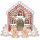 Este diseño presenta ilustraciones acuáticos de la casa de caña de caramelo, el niño de pan de jengibre y el chica de pan de jengibre, árboles blancos de Navidad.