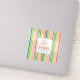 Celebrate a perfect new addition with these charming candy cane striped baby shower or birthday stickers, featuring a bold reddish orange, lime, sage and forest greens and bold pink. The colorful striped design creates a vibe of fun and whimsy. The customizable text is a mix of modern and script typography, in fun colors that reflect the bold framing and pattern on the back. You can add these to gifts, favors or ordinary items to turn them into custom décor