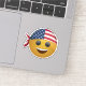 Este diseño pegatina presenta una alegre cara de emoji amarilla con una gran sonrisa amistosa. La emoji lleva una elegante bandana de la bandera estadounidense, con las estrellas y las rayas vívidamente desplegadas, atadas a la cabeza de manera fresca. Los vivos colores rojo, blanco y azul del bandana contrastan con el amarillo brillante de la emoji, creando un ambiente divertido y patriótico. Perfecto para expresar tanto positividad como orgullo nacional, este pegatina es un accesorio excelente para laptops, botellas de agua o laptops.