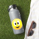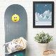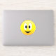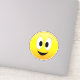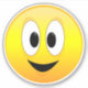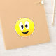 Una gran cara redonda alegre y amarilla. Cara redonda amarilla con grandes ojos ovalados y una boca alegremente abierta sonriente.