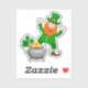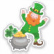 Leprechaun alegre de carácter con una olla llena de monedas de oro y un trébol, enano en un ilustracion caftán verde para el día de san patrick