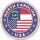 Diseño de Carolina del Norte con bandera de Carolina del Norte y bandera de Estados Unidos, en forma redondeada. Pegatina de automóviles de Carolina del Norte, pegatina de equipaje de Carolina del Norte, pegatina de viajes de Carolina del Norte