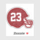 Los aficionados al fútbol y los jugadores apreciarán esta sencilla silueta de casco con una textura angustiada y un área de texto personalizado donde se puede poner un número, año, equipo o inicial personal. Hazlo tú, hazlo tuyo. Los colores clásicos rojo y blanco marrón son perfectos para muchos equipos, pero hay otras combinaciones de colores disponibles. ¡Este pegatina de cascos de fútbol personalizado es genial para atletas de secundaria y también de escuela secundaria, jóvenes y más!
