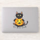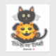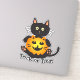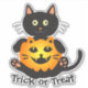 Un gato de Halloween sosteniendo una linterna de Jack-o'-Lantern se curvó como un gato para jugar al truco o tratar. Un regalo lindo y humorístico de Halloween para los amantes de los gatos.