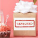 Ilustracion gráfico de un sello de goma censurado contra un pegatina.