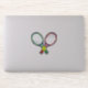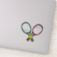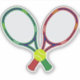 Se trata de unas coloridas raquetas gráficas rojas y verdes de tenis y una pelota de tenis de color clásico.