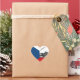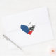 Pegatina checo patriótico con bandera checa y vista sobre el Castillo de Praga "Hradčany" con dominante de la Catedral de San Vitus. Famosa vista del panorama histórico de Praga.