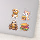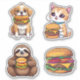 Presentamos nuestra página pegatina de Chews Cheeseburger, con un gatito, cachorro y pereza irresistiblemente adorables, todos disfrutando con ganas de sus hamburguesas de queso. Este encantador conjunto de pegatinas reúne a tres animales adorables en un diseño divertido y lúdico, perfecto para añadir un toque de brillo a tus pertenencias.