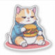 Conozca a nuestro adorable y regordete gato que tiene sus patas en la mejor comida de confort, ¡una enorme y jugosa hamburguesa de queso! Este pegatina no es sólo una adición bonita a su colección; es una declaración que combina dos de los mayores placeres de la vida: gatos suaves y hamburguesas de queso.
