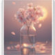 An elegant artwork depicting a branch of pink sakura flowers inside a transparent glass jar, bathed in the warm glow of a peach and lavender sunset. It reflects a sense of tranquility and natural beauty, making it perfect for gifts, invitations, and special occasion cards such as weddings or birthdays. A perfect blend of simplicity and serene Japanese romance.