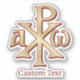 Icono de cristograma Chi-ro con letras alfa y omega. Monograma que forma abreviatura para el nombre de Jesucristo. Texto personalizado.