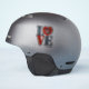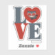 Echa un vistazo a Chibi Catwoman dentro de un corazón rojo que representa la "O" en este logo apilado de "LOVE".