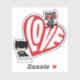 Echa un vistazo a Chibi Catwoman posteando en la Chibi Batman en este adorable gráfico, presentando un corazón rojo gigante con la palabra "Amor".