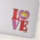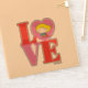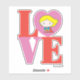 Echa un vistazo a Chibi Supergirl dentro de un corazón de ping que representa la "O" en este logo apilado de "LOVE".