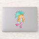 Pegatina Chica Con Paraguas, Chica En Lluvia, Cabello Naran