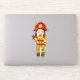 Pegatina Chica de bomberos, bombera, pelo marrón
