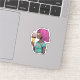 Chica de pelo rosa sostiene a Pegatina de helado de cono