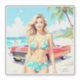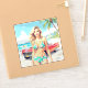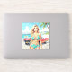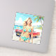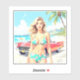Pegatina Chica en la playa con un coche clásico