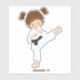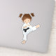 Pegatina Chica Karate, Chica Cute, Pelo Marrón, Cinturón Ne