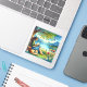 Pegatina Chica leyendo un libro bajo un árbol con un gato s