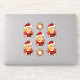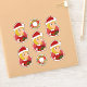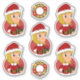 Conjunto de siete pegatinas cortados de vinilo con un ilustracion de un lindo chica sonriente feliz con el pelo rubio, vestido con ropa de Navidad y llevando un gorra rojo de Santa Claus, con un fondo rojo; cinco pegatinas del chica y dos pegatinas con un guirnalda de Navidades