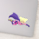 Pegatina Chica superhéroe, héroe, pelo rubio, cabo púrpura