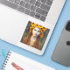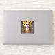 La calcomanía de vinilo para electrónica, autos y más, presenta un retrato asombrosamente hermoso de un joven chica ucraniano con pelo largo trenzado, corona de girasol y fondo con estampado de amuleto, creado con software de representación de IA. ¡Eslava Ukraini!