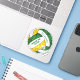 Este pegatina de voleibol verde, dorado y blanco con el nombre de equipo personalizado y mascota escolar presenta un patrón caleidoscópico floral mezclado con los paneles de voleibol verde y dorado y un giro artístico y abstracto mezclado con los paneles blancos -su nombre y nombre de equipo son personalizable, al igual que su número jersey en un pequeño voleibol blanco- de katz_d_zynes