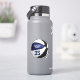Este pegatina personalizado de baloncesto presenta la imagen realista de un baloncesto que tiene paneles alternados de color azul, blanco y negro, en los que se puede personalizar el nombre y número de camiseta del atleta más el nombre del equipo - de katz_d_zynes