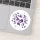 Este divertido pegatina de vinilo presenta una "explosión" de balones de fútbol de tamaño diverso, pelos de color púrpura y blanco y formas de estrellas grises, púrpuras y blancas - un patrón de pequeños puntos de polka cubre la estrella morada - personalizar con el nombre y número de camiseta del atleta - de katz_d_zynes