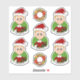 Conjunto de siete pegatinas cortados de vinilo con el ilustracion de un lindo niñito feliz sonriente con el pelo rubio corto, vestido con ropa de Navidad y llevando un gorra rojo de Santa Claus, con un fondo verde; venían cinco pegatinas del niño y dos pegatinas con Navidades; con una plantilla de texto de personalizable para tu nombre o mensaje