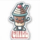 Un dulce chocolate personalizado agita a la mascota con el texto "chill". batido de chocolate con crema batida y cereza en el personalizado superior.