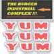 Un chiste gracioso sobre la hamburguesa de colores rojo y negro con palabras