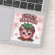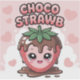 Un nuevo diseño de personaje de dibujos animados lindo. Un personaje de fresa super kawaii está diseñado cubierto de chocolate derretido que gotea desde arriba, con algunos corazones rosados lindos en el fondo. Una tipografía agradable con la frase "CHOCO FRESAS" se añade en una fuente y estilo perfectos.