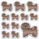 El original ilustracion personalizado de Destei de un lindo abrigo marrón chocolate Bichon Havanais / perro de raza Havanese. El diseño se coloca 12 veces sobre la hoja en tres tamaños diferentes. Hay un perro más grande, tres perros medianos y ocho perros pequeños.